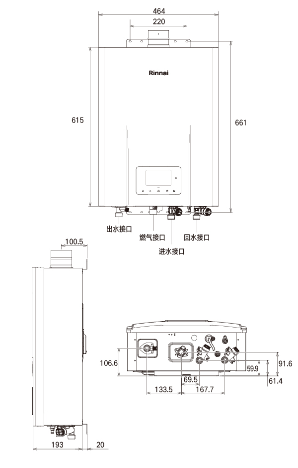 外形尺寸(mm) : (W)464×(H)615×(D)193